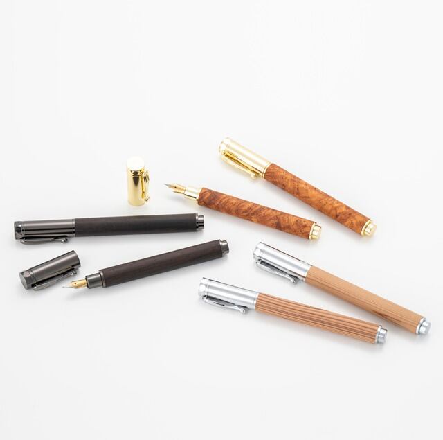高級家具材として知られる銘木の天然木材を活かした万年筆です。木肌の温もりが感じられるオリジナル万年筆です。使うことで色ツヤが変わり経年変化を楽しんでもらえ、この世で1本の自分だけのオンリーワン筆記具となります。Pen先金具は世界の人に愛されるドイツ(DAYACOM社製・合金)中字を使用しており、コンバーター(内蔵)とカートリッジは交換可能です。