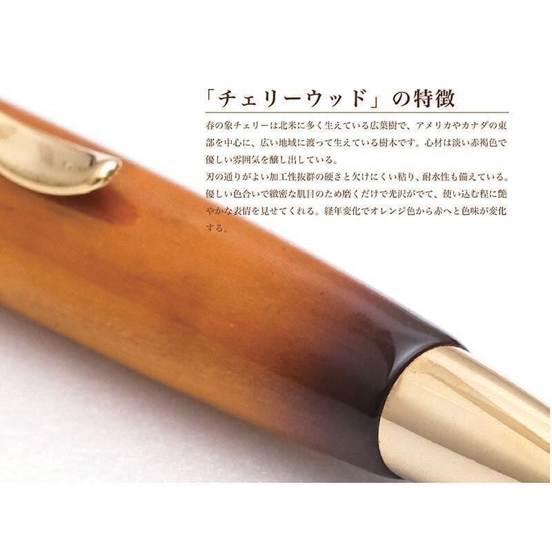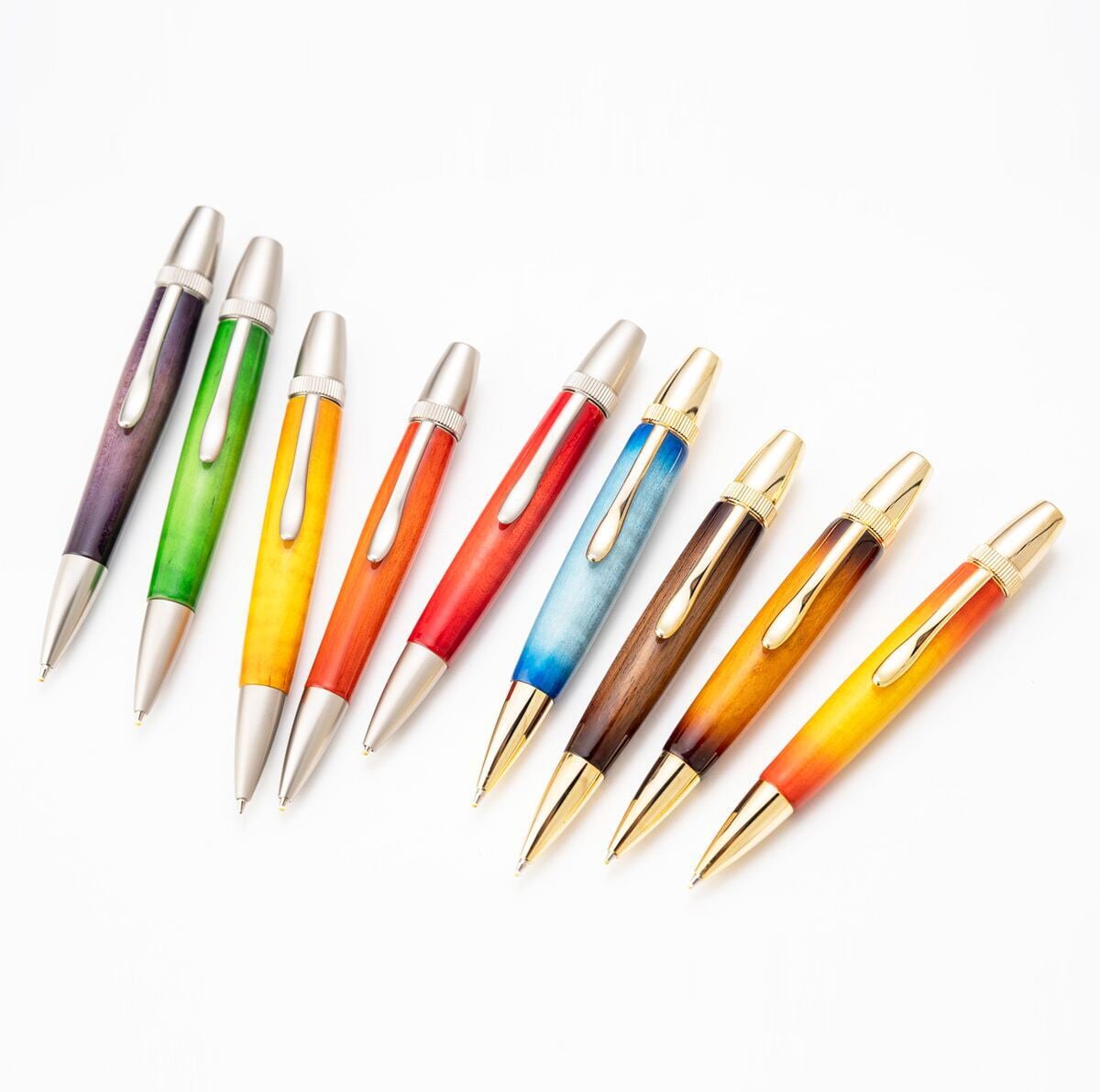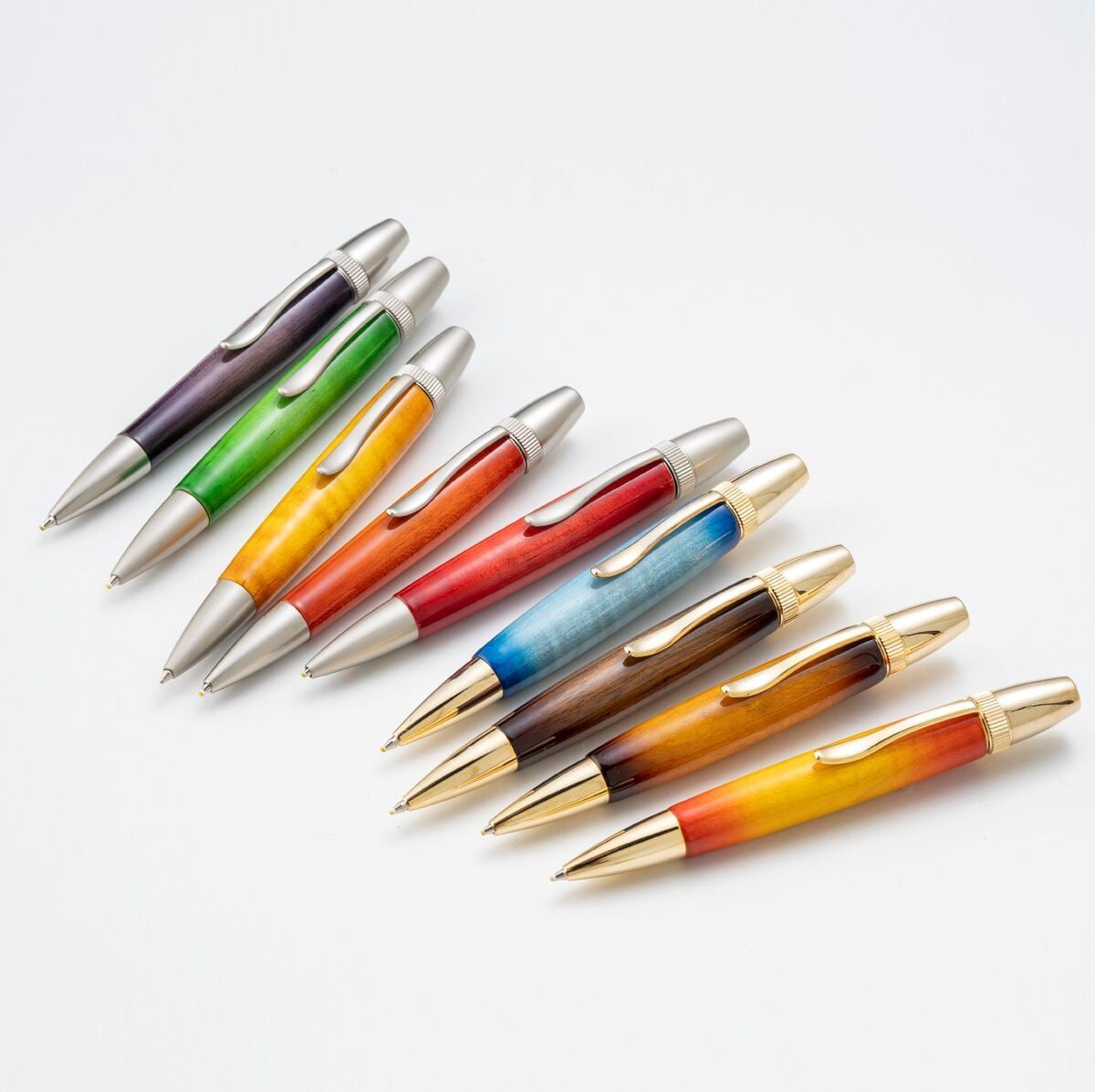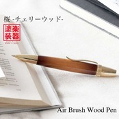 天然木にウレタン塗装をエアーブラシで吹き付けた楽器ようなボールペン。